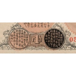• Imprimeur indiqué au centre bas dans un double arc de cercle : _Japon-imp-01.gif (Bureau de la Monnaie, Cabinet d'Impression, Ministère des Finances, Gouvernement Impérial du Grand Japon)