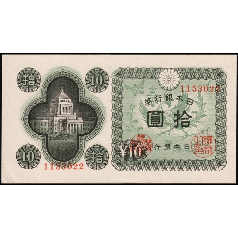 • Japon - Pick 87_1b - 10 yen - Série 1530 - Code imprimeur 22 - 1946 - Etat : SPL+
