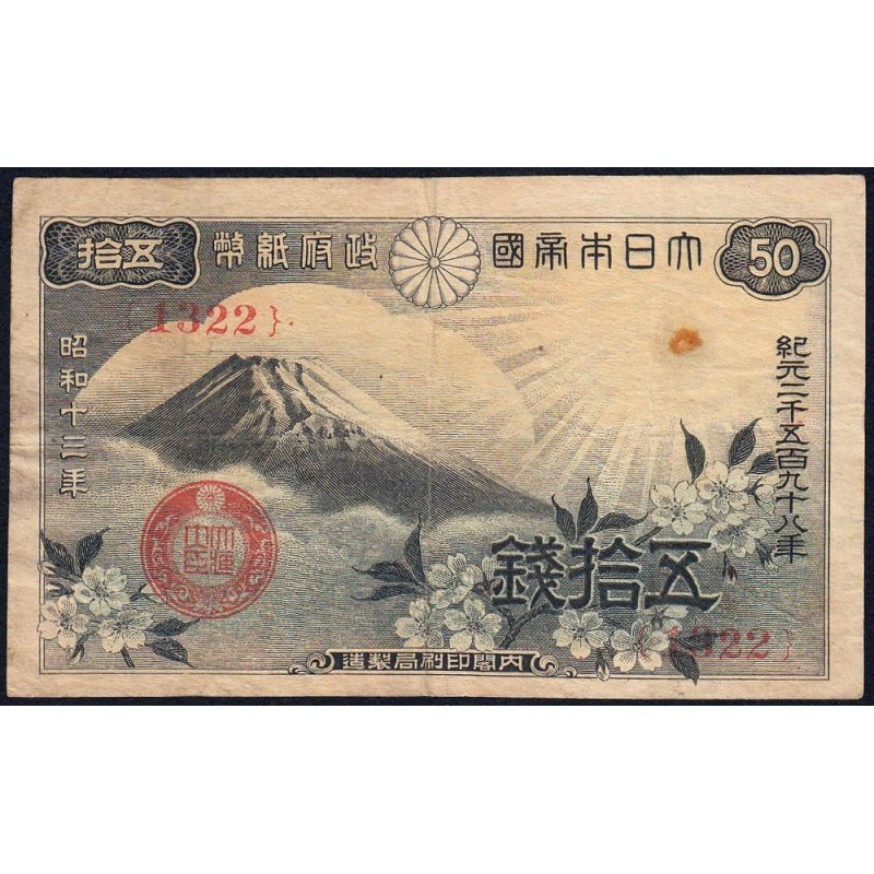 Avers : Sceau impérial à 16 pétales doubles (chrysanthème), soleil sur le Mont Fuji, branche de cerisier avec des fleurs