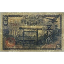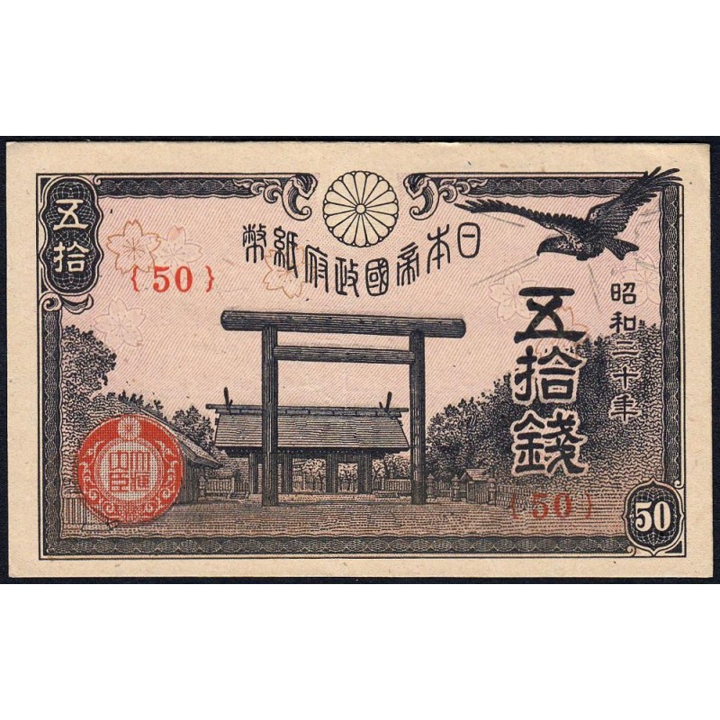 Avers : Sceau impérial à 16 pétales doubles (chrysanthème), sanctuaire shintoïste Yasukuni à Tokyo, colombe en vol, fleurs de cerisier en arrière