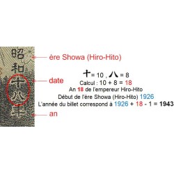 Avers : Sceau impérial à 16 pétales doubles (chrysanthème), sanctuaire shintoïste Yasukuni à Tokyo, colombe en vol, fleurs de cerisier en arrière