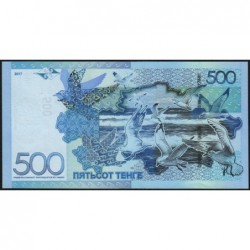 Revers : Contour de la carte du Kazakhstan avec à l'intérieur un paysage de la mer Caspienne survolée par des mouettes,