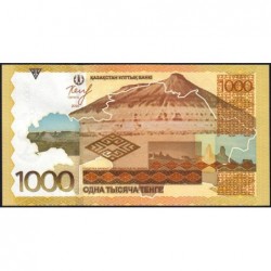 Revers : Contour de la carte du Kazakhstan avec à l'intérieur des paysages du plateau d'Ustyurt
