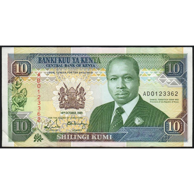 Kenya - Pick 24a - 10 shillings - Série AD - 14/10/1989 - Etat : TTB+