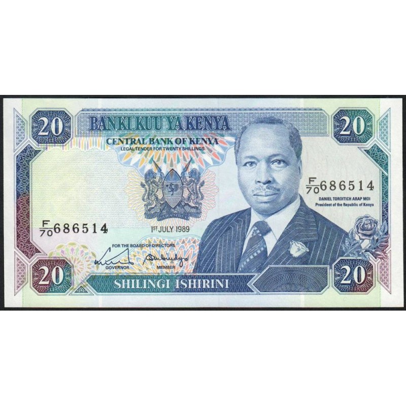 Kenya - Pick 25b - 20 shillings - Série F/70 - 01/07/1989 - Etat : pr.NEUF