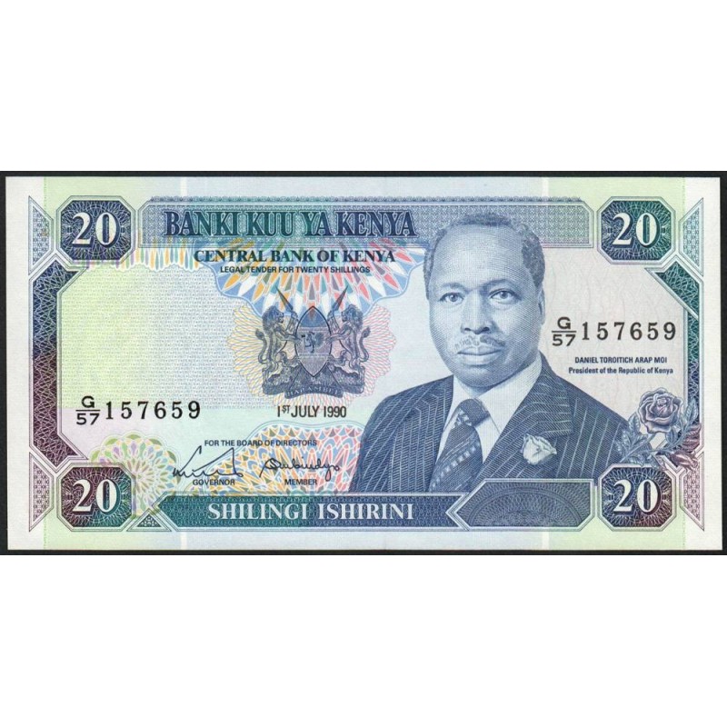 • Kenya - Pick 25c - 20 shillings - Série G/57 - 01/07/1990 - Etat : NEUF