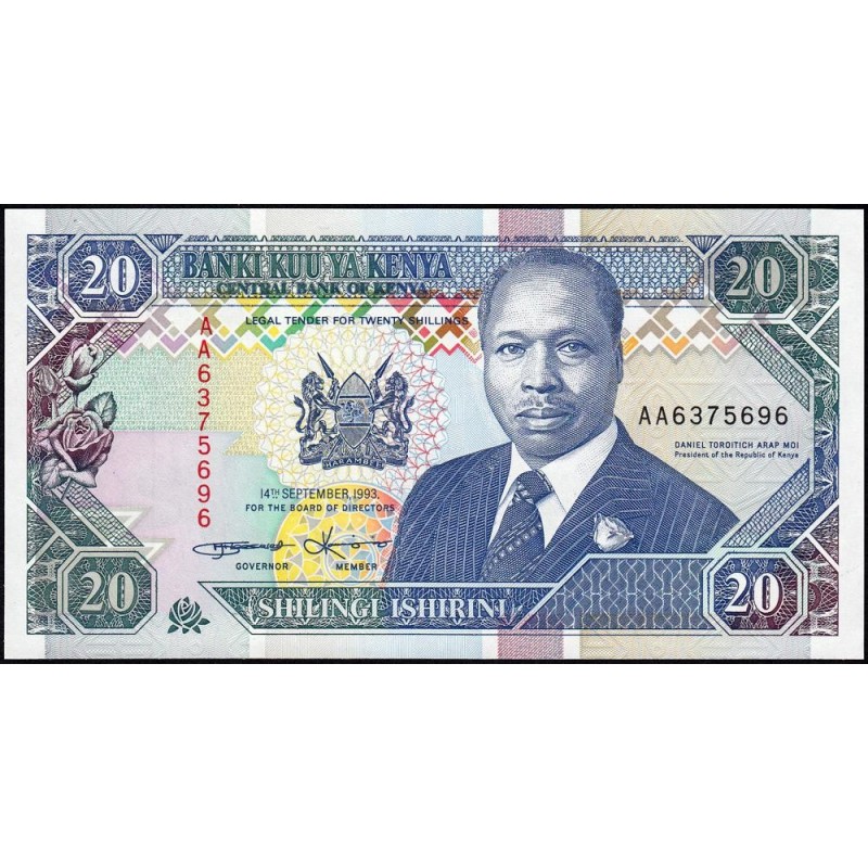 Avers : Portrait de Daniel Toroitich Arap Moi (1924-2020) président de la république de 1978 à 2002, emblème du pays