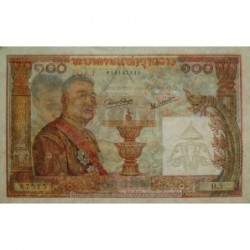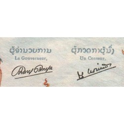Avers : Portrait du roi Sisavang Vong (1885-1959) roi de 1904 à 1959, le Livre de la Constitution au dessus de deux calices royaux, emblème de la monarchie (éléphant blanc à trois têtes sous un parasol à sept plis)