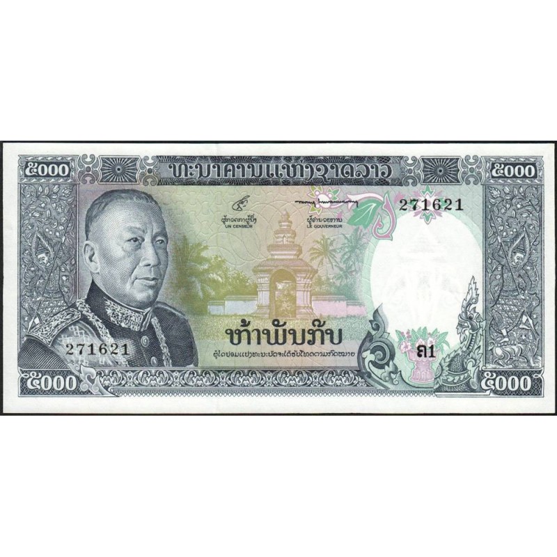Avers : Portrait du roi Savang Vatthana (1907-1978) roi de 1959 à 1975, pagode bouddhiste