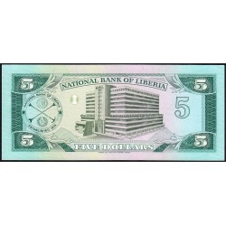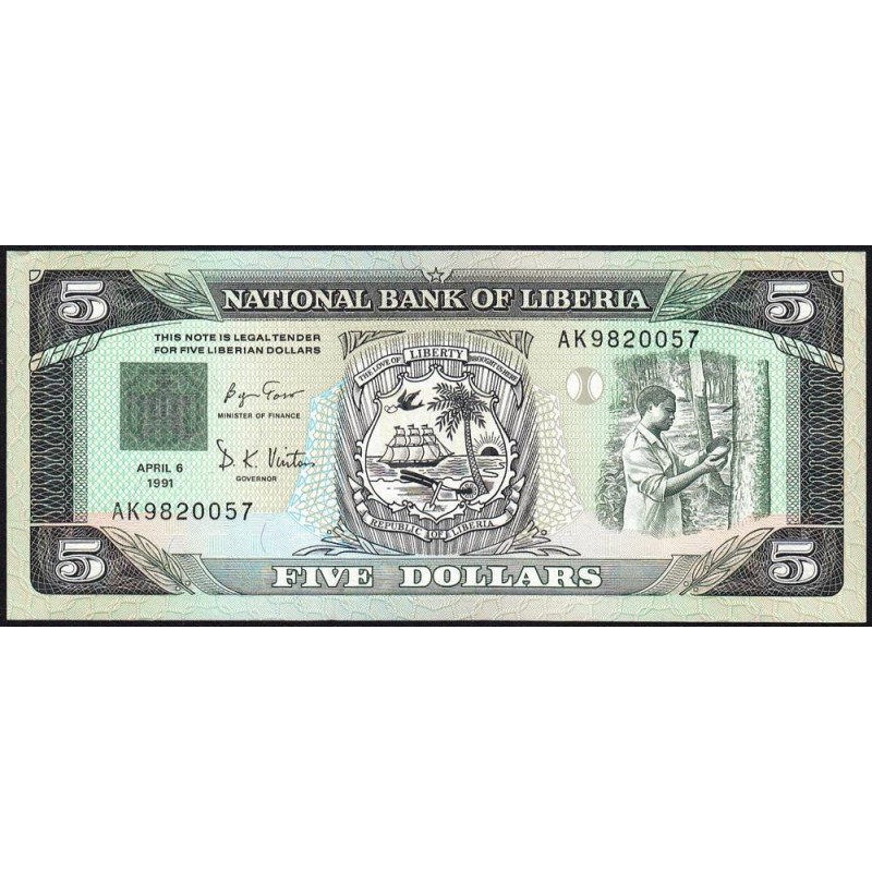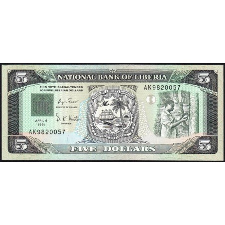 Libéria - Pick 20 - 5 dollars - Série AK - 06/04/1991 - Etat : pr.NEUF