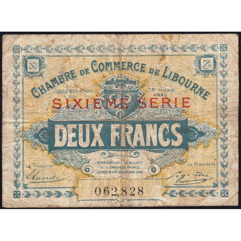 Libourne - Pirot 72-31 - 2 francs - Sixième série - 12/03/1920 - Etat : B