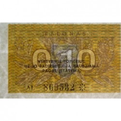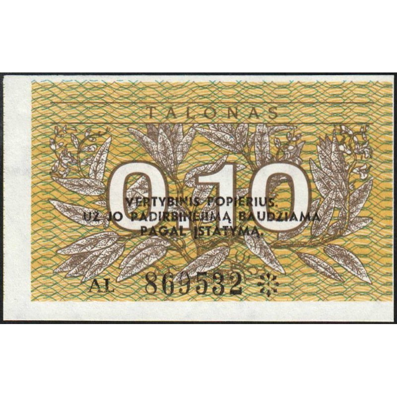 Lituanie - Pick 29b - 0,10 talonas - Série AL - 1991 - Etat : NEUF