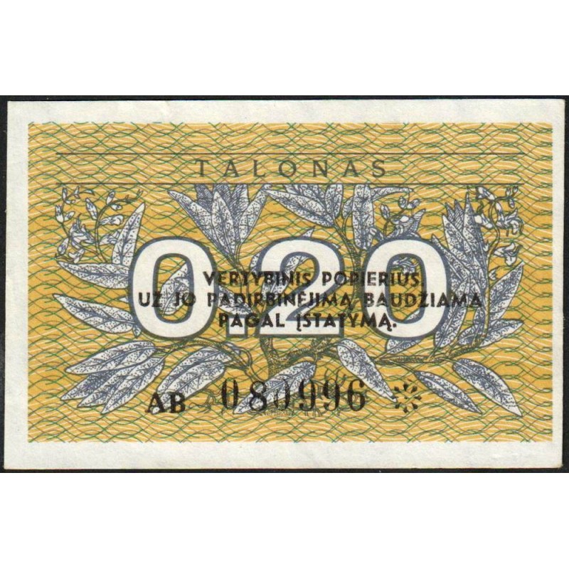 Lituanie - Pick 30 - 0,20 talonas - Série AB - 1991 - Etat : SUP