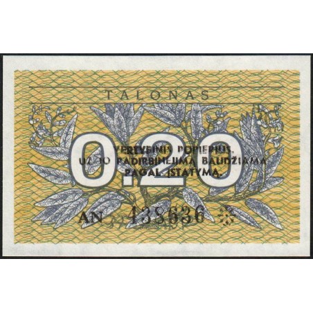 Lituanie - Pick 30 - 0,20 talonas - Série AN - 1991 - Etat : SUP