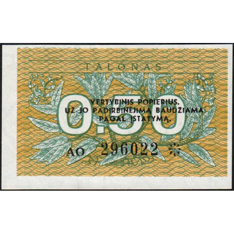 Lituanie - Pick 31b - 0,50 talonas - Série AO - 1991 - Etat : NEUF