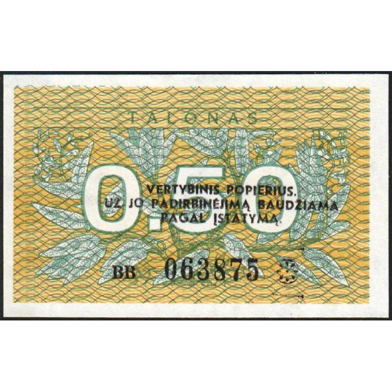 Lituanie - Pick 31b - 0,50 talonas - Série BB - 1991 - Etat : NEUF