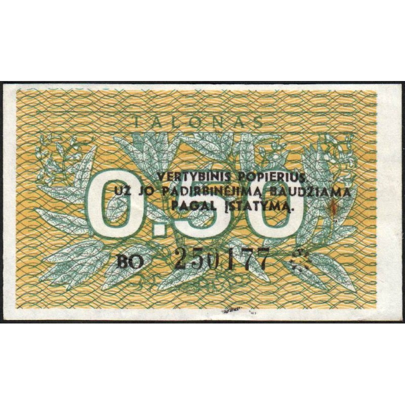 Lituanie - Pick 31b - 0,50 talonas - Série BO - 1991 - Etat : NEUF