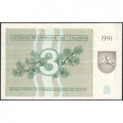 Lituanie - Pick 33b - 3 talonas - Série AJ - 1991 - Etat : pr.NEUF