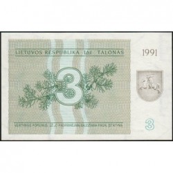 Lituanie - Pick 33b - 3 talonas - Série BJ - 1991 - Etat : NEUF