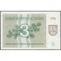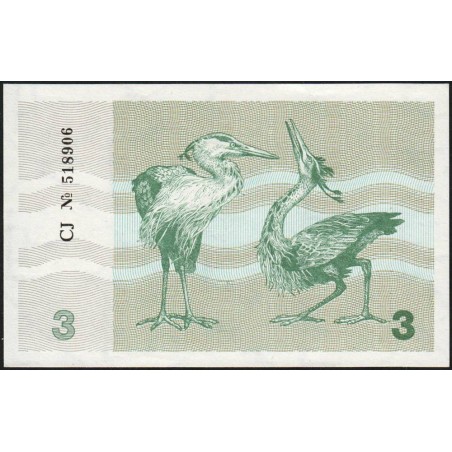 Lituanie - Pick 33b - 3 talonas - Série CJ - 1991 - Etat : NEUF