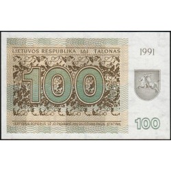 Lituanie - Pick 38b - 100 talonas - Série DA - 1991 - Etat : NEUF