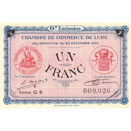 Lure - Pirot 76-37 - 1 franc - Série G 9 - 23/12/1920 - Etat : SUP+