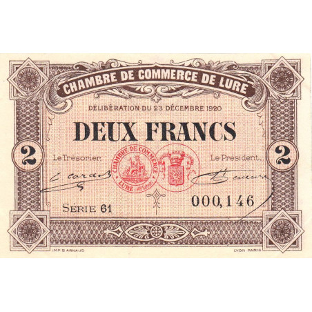 • Lure - Pirot 76-39 - 2 francs - Série 61 - 23/12/1920 - Etat : SUP+