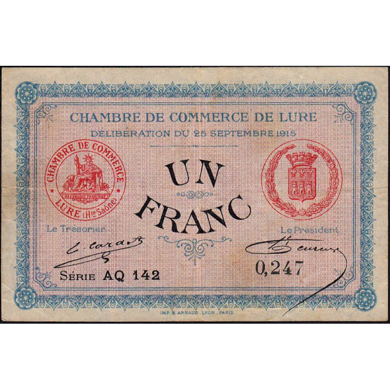 • Lure - Pirot 76-7- 1 franc - Série AQ142 - 25/09/1915 - Etat : TB+