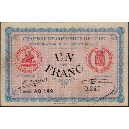 Lure - Pirot 76-7- 1 franc - Série AQ142 - 25/09/1915 - Etat : TB+