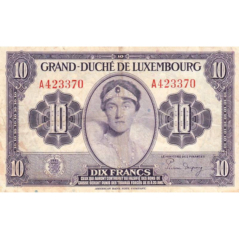 Luxembourg - Pick 44a_2 - 10 francs - Série A - 1944 - Etat : TB+