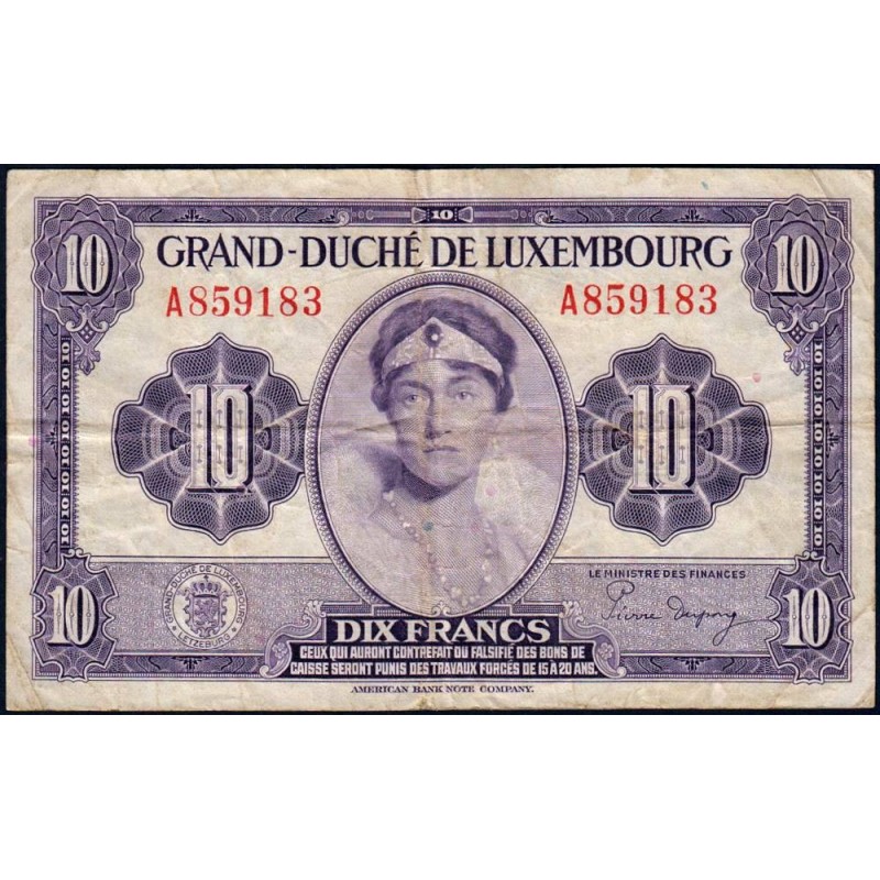 Luxembourg - Pick 44a_2 - 10 francs - Série A - 1944 - Etat : TB
