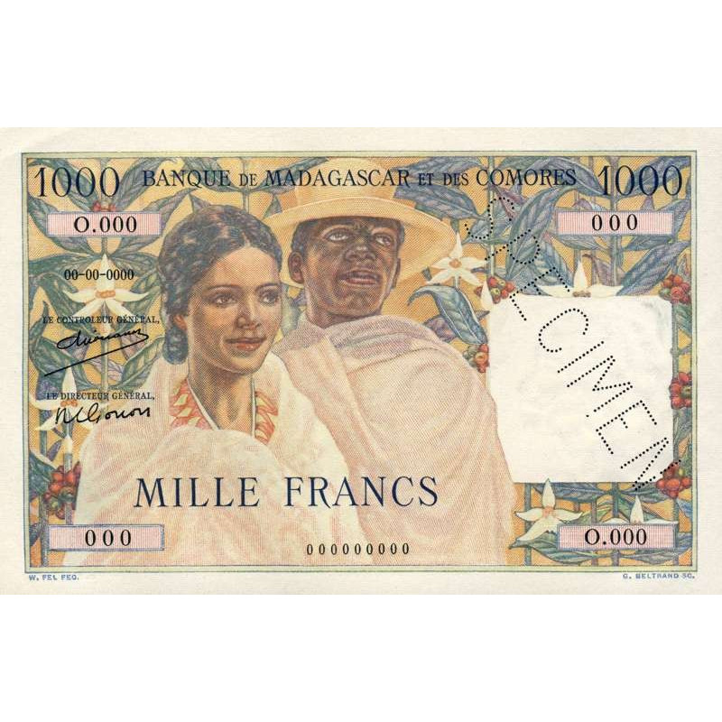 Avers : Couple malgache des hauts plateaux portant le lamba traditionnel, tout autour des fleurs de vanilles