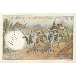 Revers : Trois personnes sur une charette tirée par des zébus dans un paysage des hauts plateaux