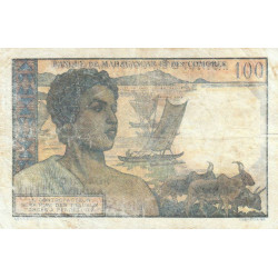 Revers : Jeune homme Vezo avec son lamba sur l'épaule, pirogues à balancier et zébus