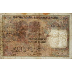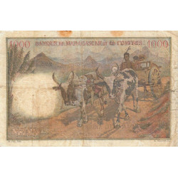 Revers : Trois personnes sur une charette tirée par des zébus dans un paysage des hauts plateaux