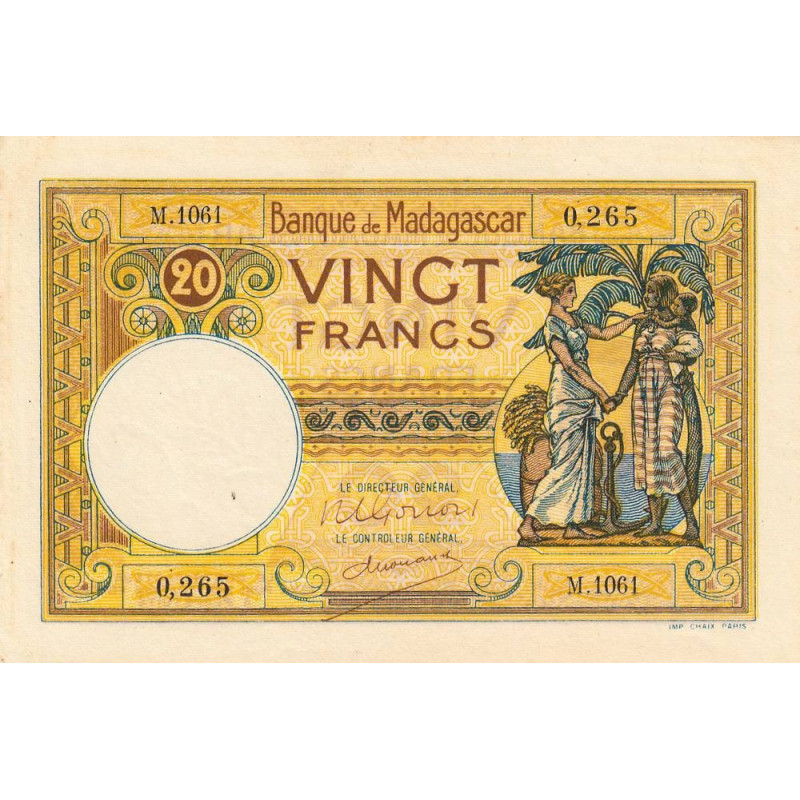 Avers : Femme malgache portant un bébé et femme française se donnant mutuellement la main, sac rempli d'épis de blé, palmier