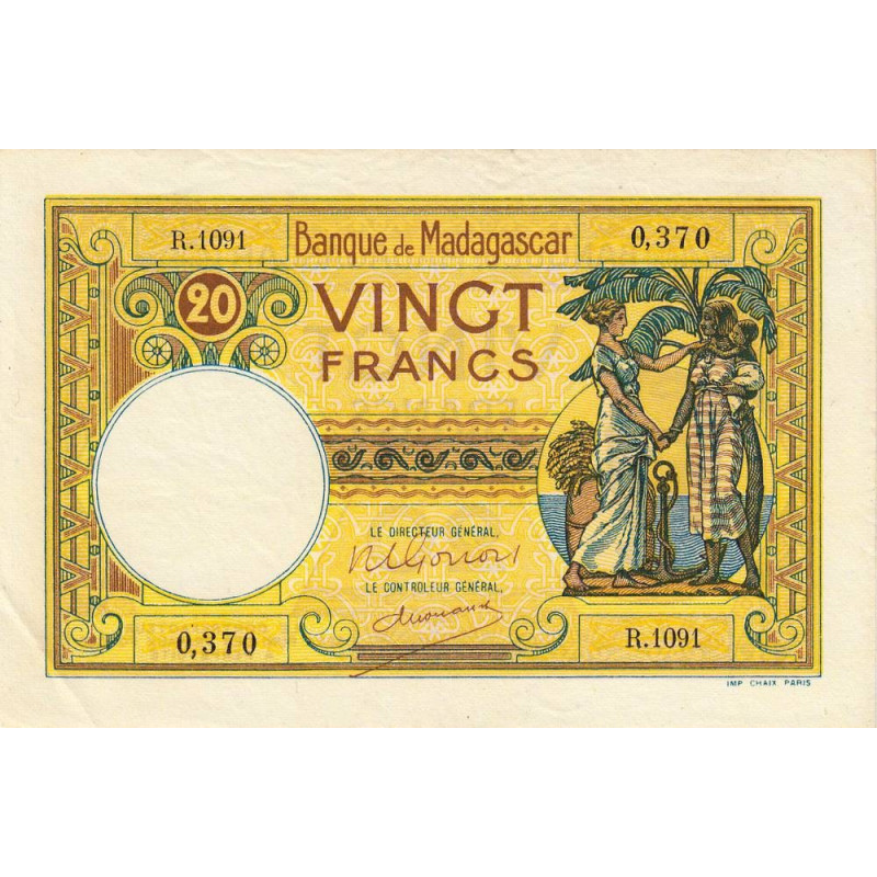 Avers : Femme malgache portant un bébé et femme française se donnant mutuellement la main, sac rempli d'épis de blé, palmier