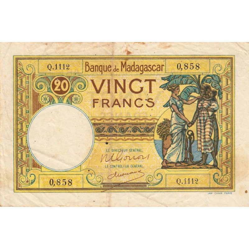 Avers : Femme malgache portant un bébé et femme française se donnant mutuellement la main, sac rempli d'épis de blé, palmier