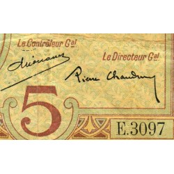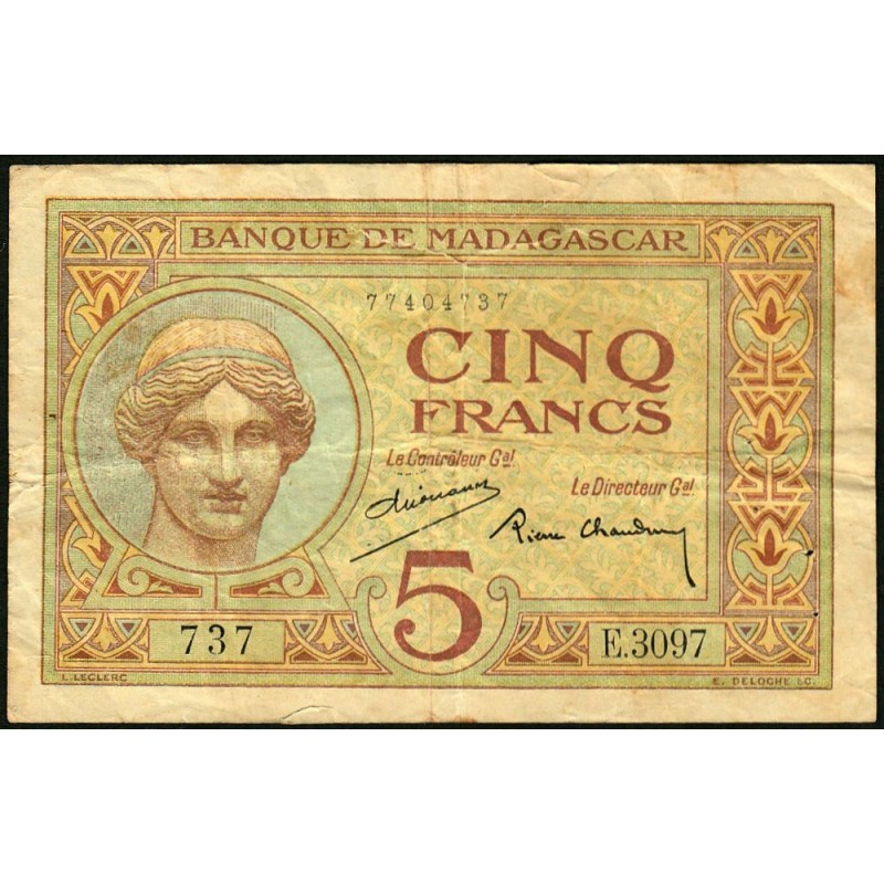 • Madagascar - Pick 35b - 5 francs - Série E.3097 - 1937 - Etat : B+