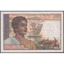 Revers : Jeune homme Vezo avec son lamba sur l'épaule, pirogues à balancier et zébus