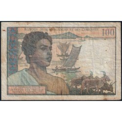 Revers : Jeune homme Vezo avec son lamba sur l'épaule, pirogues à balancier et zébus