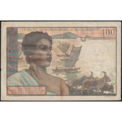 Revers : Jeune homme Vezo avec son lamba sur l'épaule, pirogues à balancier et zébus