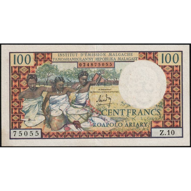 Revers : Baobabs, à gauche cactus figuier de Barbarie, à droite aloalo (poteau funéraire traditionnel richement sculpté)