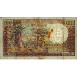 Revers : Baobabs, à gauche cactus figuier de Barbarie, à droite aloalo (poteau funéraire traditionnel richement sculpté)