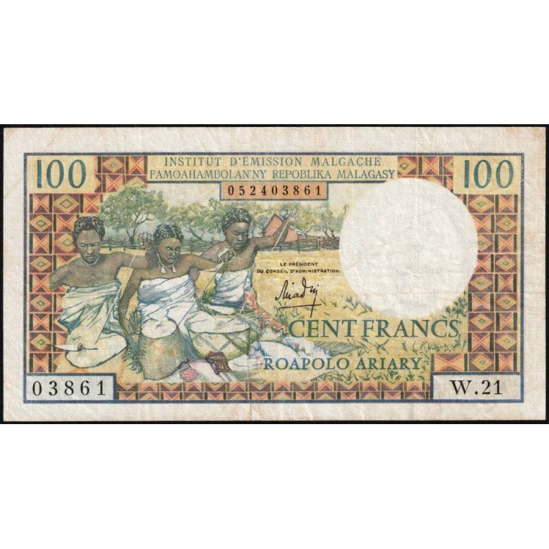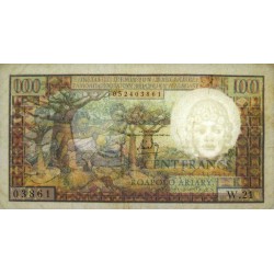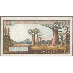 Revers : Baobabs, à gauche cactus figuier de Barbarie, à droite aloalo (poteau funéraire traditionnel richement sculpté)