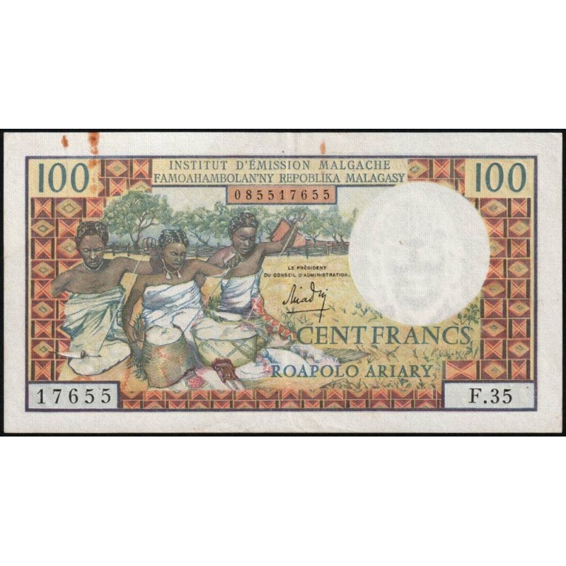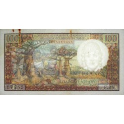 Revers : Baobabs, à gauche cactus figuier de Barbarie, à droite aloalo (poteau funéraire traditionnel richement sculpté)