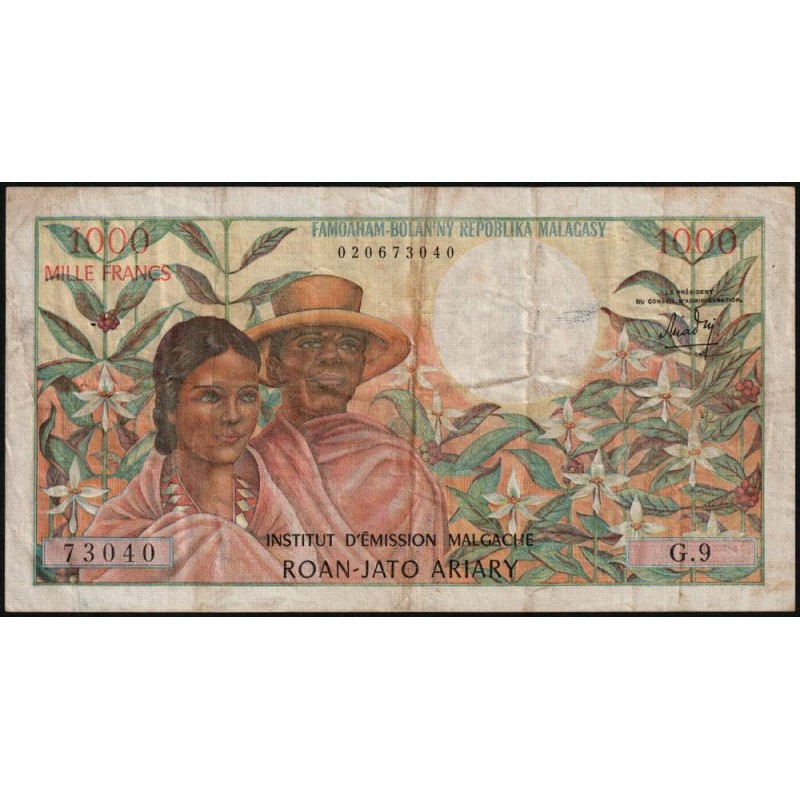 Avers : Couple malgache des hauts plateaux portant le lamba traditionnel, tout autour des fleurs de vanilles
