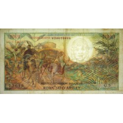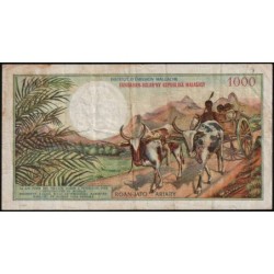 Revers : Trois personnes sur une charette tirée par des zébus dans un paysage des hauts plateaux