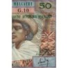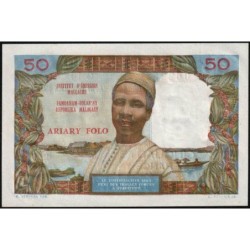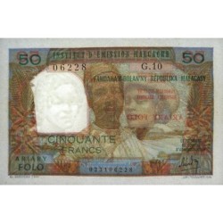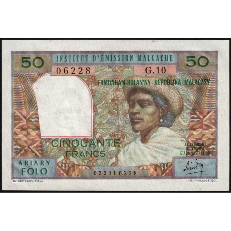 Avers : Portrait d'une femme betsileo portant son lamba traditionnel et son chapeau en paille, fleurs au centre