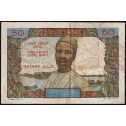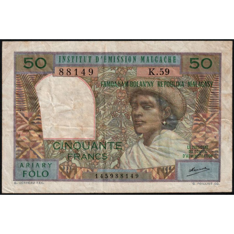 Avers : Portrait d'une femme betsileo portant son lamba traditionnel et son chapeau en paille, fleurs au centre